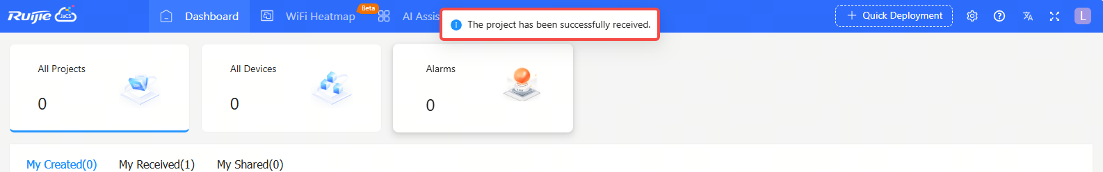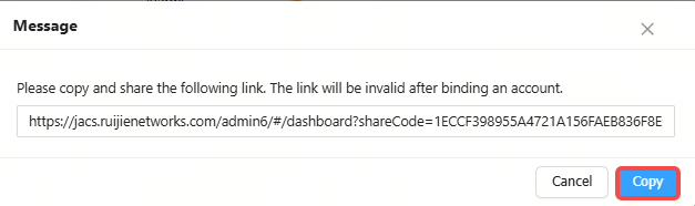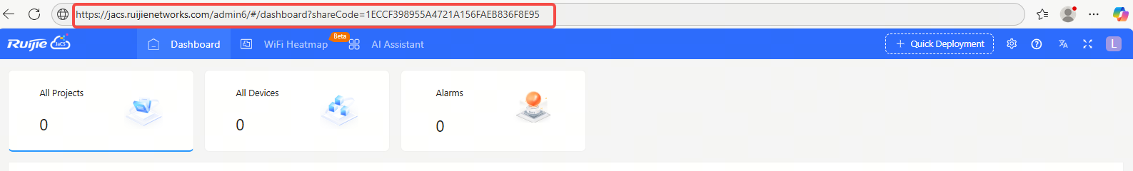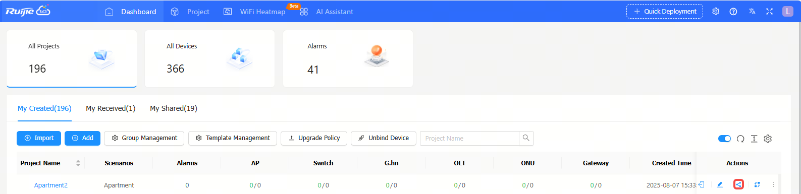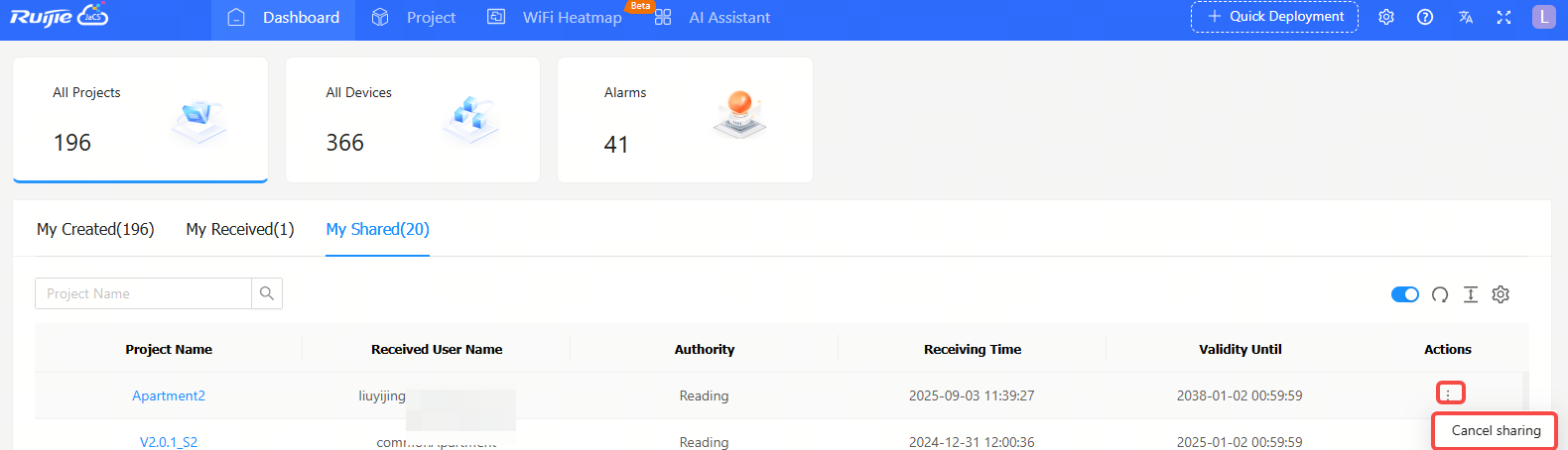Ruijie JaCS supports sharing projects with other tenants for joint management. When the specified sharing period expires, the sharing will be automatically cancelled.