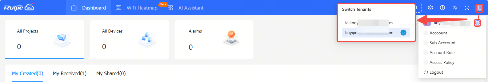 Step 8: After successfully accepting the shared project, you can switch accounts in the upper right corner of the interface.