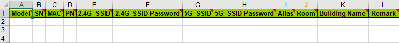 If the project scenario is set to the apartment, the batch import template is as follows: