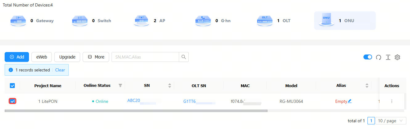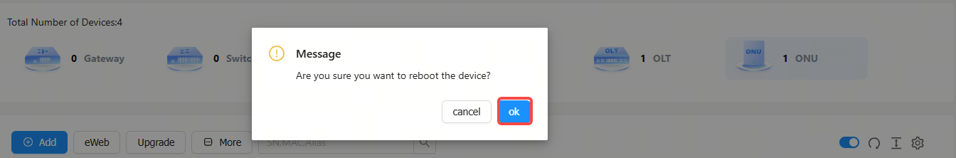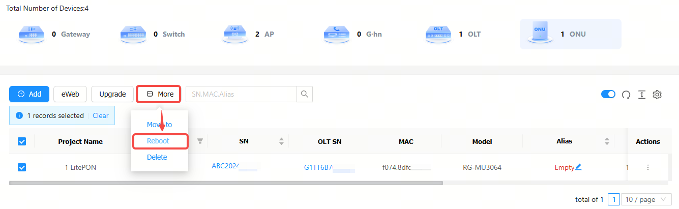 Step 1: Select the ONU device to be restarted.
