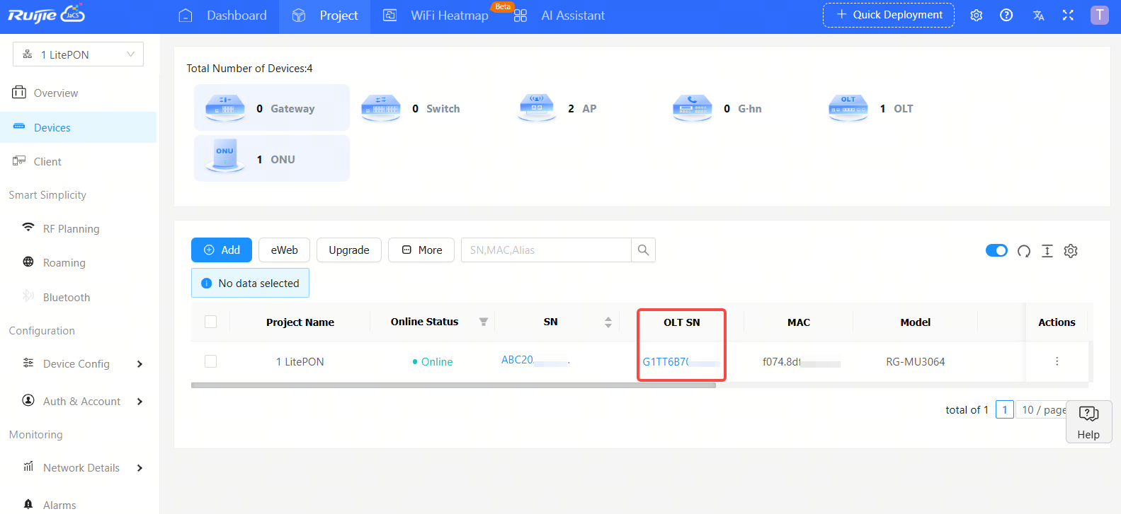 1. Display the SN of the OLT connected to an ONU in ONU List.