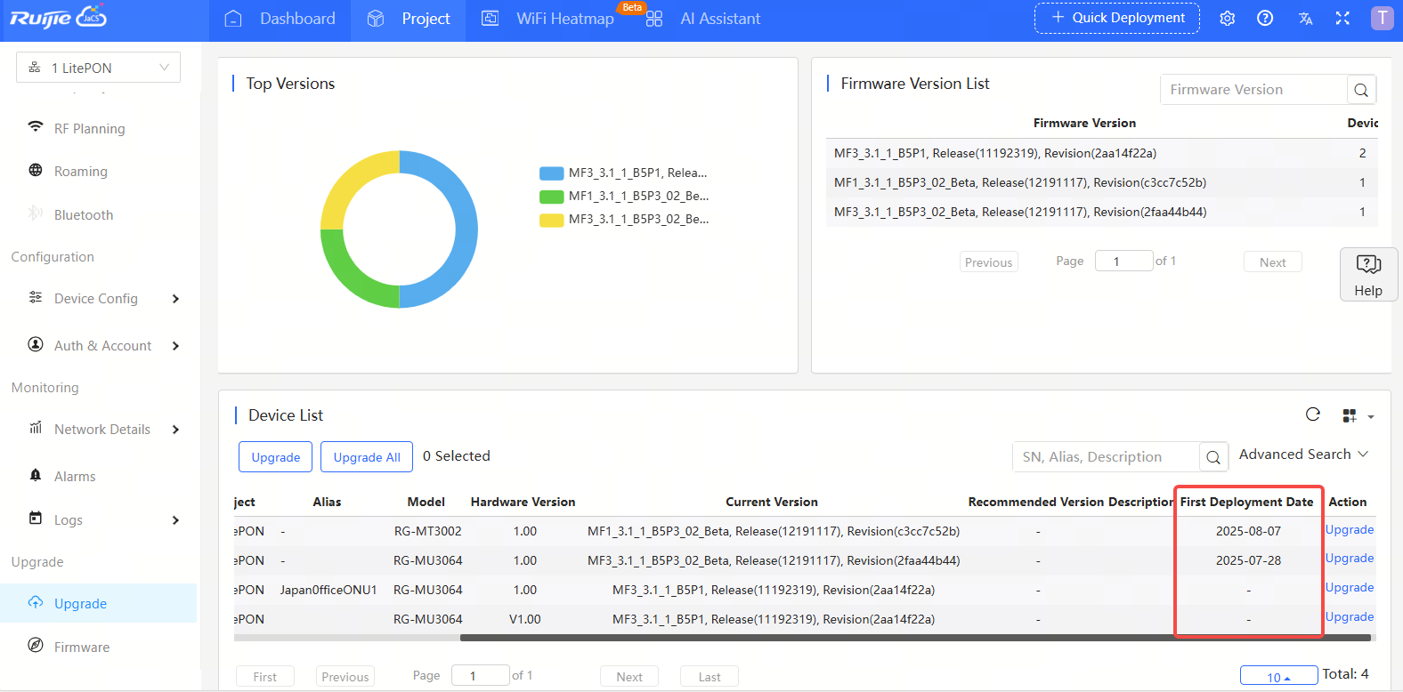 3. Display the initial online time of devices in the Device List in the Upgrade page.