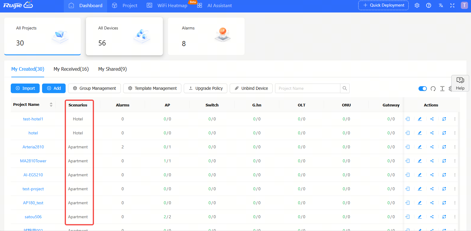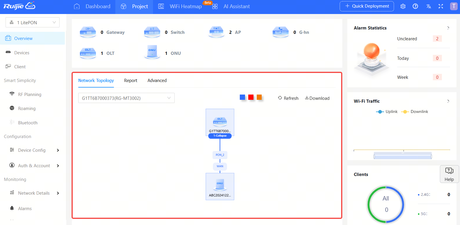 7. RG-HS2310-16GH2GT1XS and RG-HA3515-DG are displayed in the Topology page only when the root node is RG-HS2310-16GH2GT1XS or when the RG-HS2310-16GH2GT1XS is directly connected to EG5210-JP.