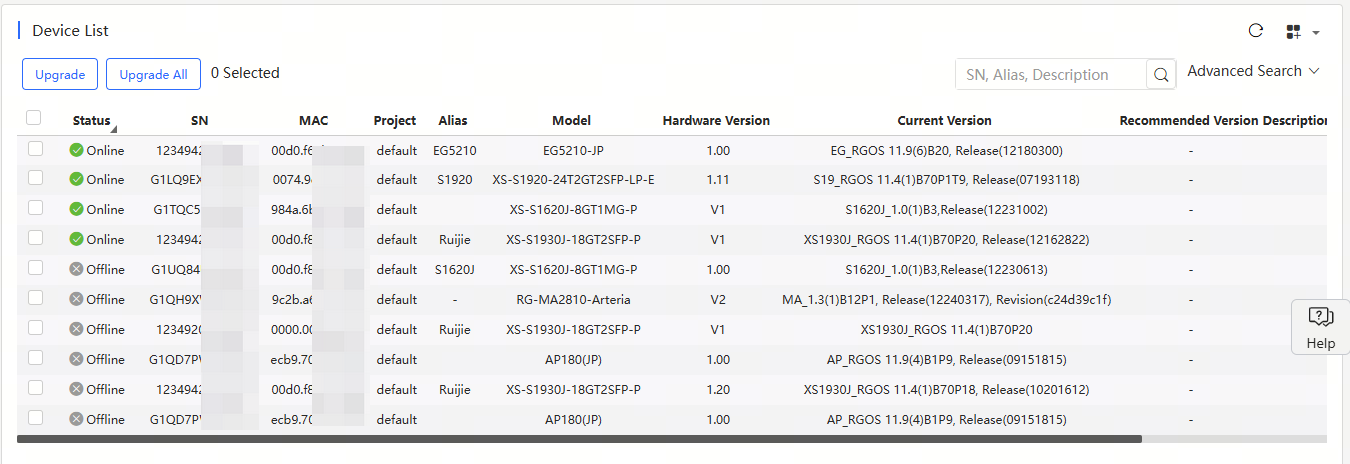 4. Display the MAC addresses of devices in the Device List in Upgrade page.