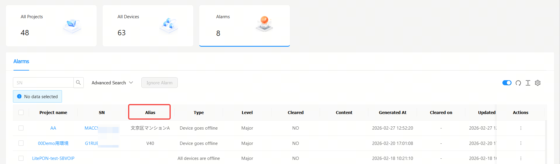 2. Add the Creation Time column to the Device List, showing when a device was imported to the cloud platform.